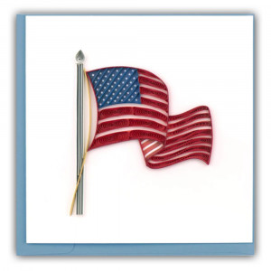 A American Flag theme card made from the art form of quilling. A delicate and beautiful art form of rolling, coiling and shapping small strips of paper to create cohesive three-dimension designs.