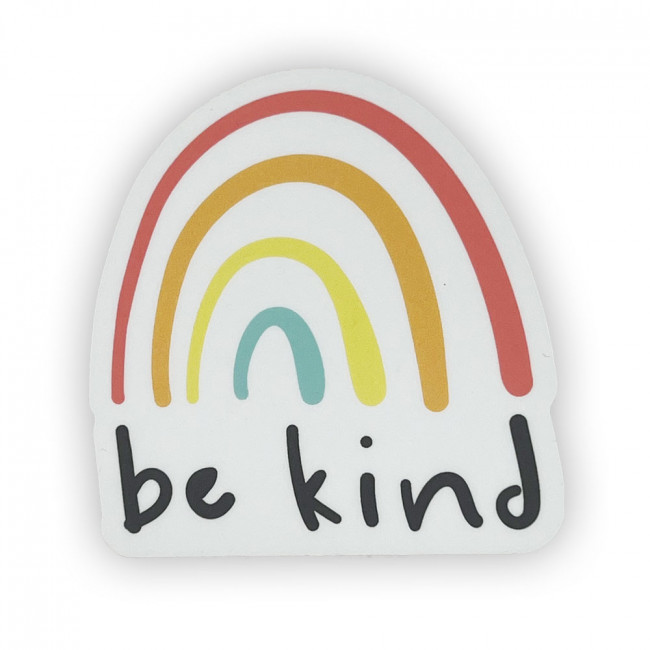 Adhesive sticker featuring a rainbow and be kind.