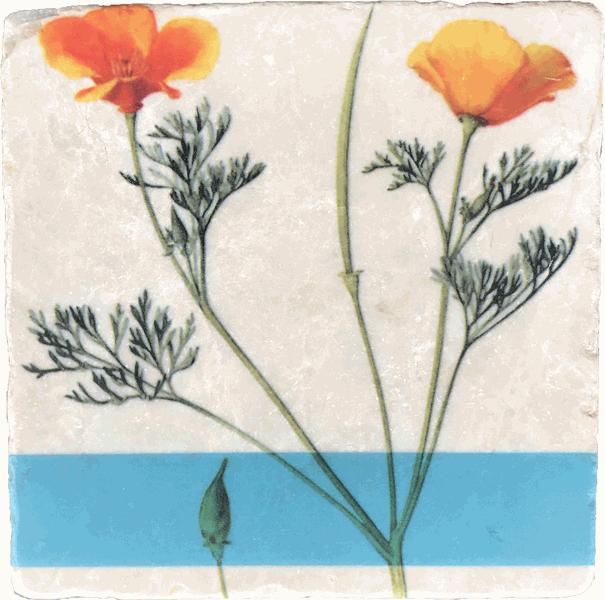 A double poppy imprint tile made from Botticino marble.