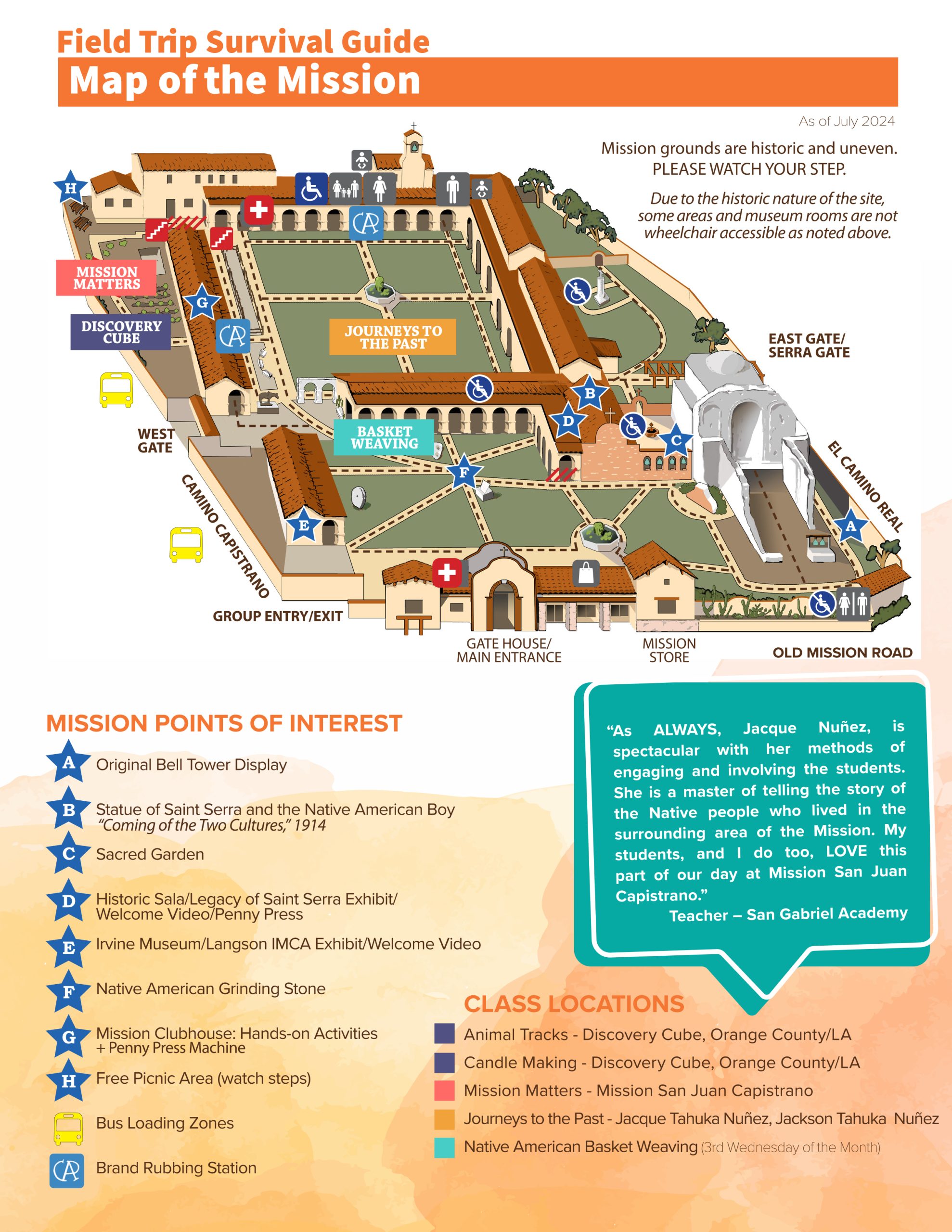 Looking for educational activities for your students? Mission San Juan Capistrano provides lesson plans, guides, activities and more designed to be used before your field trip, during your field trip or even as a lesson for students learning from home. Use our shopping forms or shop online for additional educational resources for students studying the California missions. Subscribe to our educator newsletter for tips on learning remotely, learning onsite, and extending the learning impact for educators all year long and follow us on Facebook, Twitter and Instagram for more educational content all year long. Did you know? Teachers received FREE ADMISSION every 2nd Saturday of the month on Teacher Appreciation Day!