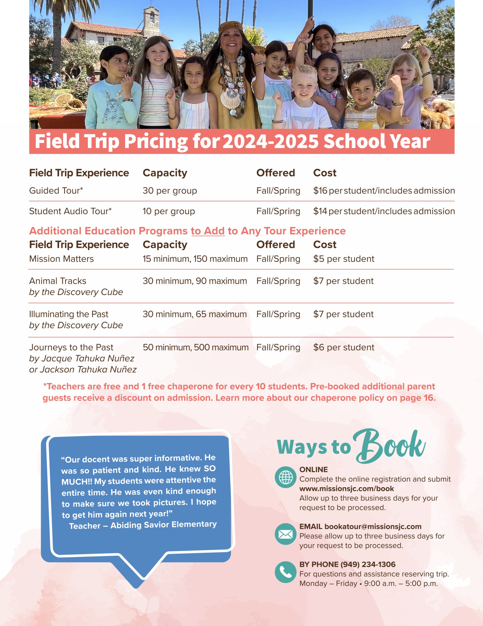 The Mission offers a $150 value video library FREE to all educators for booking their field trip in the 2024-2025 school year. These additional resources support the “pre” and “post” field trip experience, and extend the learning experience.