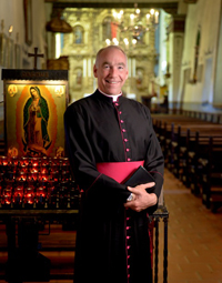 Msgr. McKiernan is a Diocesan priest, coming from former Parish, Christ Our Savior. His interests range from meeting new parishoners to learning more about California history. A “people person,” he has quickly met the Campus staff and gotten involved with the success of the landmark, debuting at the Romance of the Mission benefit gala by offering the dinner invocation.