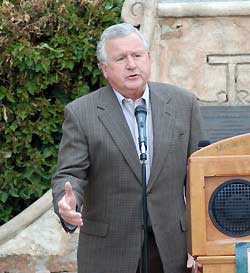 Among his many duties on the Board, he is working to find funding sources within the government and private foundations to fund Mission preservation. He lists the Mission’s strengths as its glorious tradition, success in its preservation efforts, symbolism to people of all faiths, strong board, “even stronger Executive Director” and the support received from Mission Monsignor Arthur Holquin and Bishop of Orange Tod Brown.