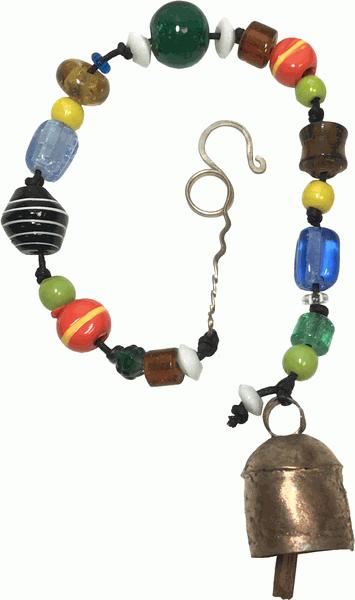 A long beaded chime featuring a one inch Nana bell, handmade in India. Measures:16"