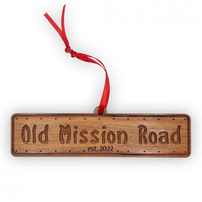 In honor of the new street name, enjoy this new ornament celebrating the Mission's new name "Old Mission Road," formerly Ortega Highway.
