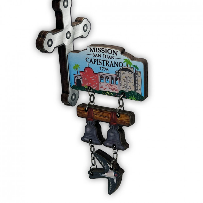 Take home this keepsake magnet to remember your visit to Mission San Juan Capistrano featuring the Mission Bells, Cross and Swallow.