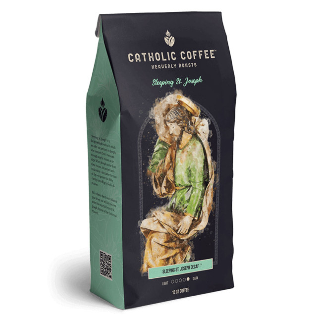 This vibrant decaf dark roast won’t disturb your sleep, but will let you rest under the watchful eye of St. Joseph, Patron of the Universal Church.