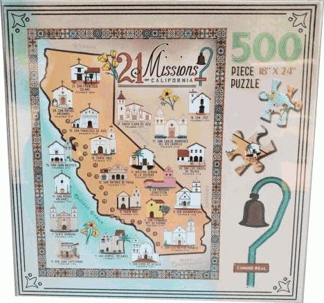 Enjoy celebrating Early California History while putting together all the pieces to California's 21 missions in this family friendly (500 piece) puzzle.
