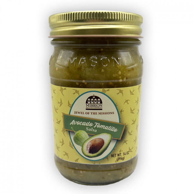 Mission branded avocado tomatillo salsa, great for dipping or cooking.