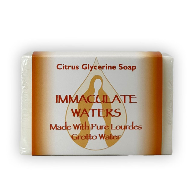 Experience the luxury of Citrus Scented Immaculate Waters Bar Soap, infused with the pure Lourdes Grotto Water. This unique bath and body bar combines high-quality ingredients to nourish your skin while providing an uplifting citrus scent. Though not blessed, the water evokes Mary's love and care, offering a rejuvenating bathing experience at home.