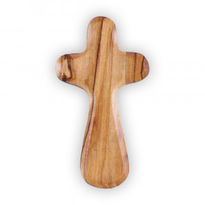 Light weight, hand carved from Olive wood cross made in Bethlehem. This cross provides comfort anywhere, in the home, in a hospital, at a doctor's visit, outdoors or during prayer.