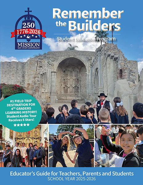 Looking for educational activities for your students? Mission San Juan Capistrano provides lesson plans, guides, activities and more designed to be used before your field trip, during your field trip or even as a lesson for students learning from home. Use our shopping forms or shop online for additional educational resources for students studying the California missions. Subscribe to our educator newsletter for tips on learning remotely, learning onsite, and extending the learning impact for educators all year long and follow us on Facebook, Twitter and Instagram for more educational content all year long. Did you know? Teachers received FREE ADMISSION every 2nd Saturday of the month on Teacher Appreciation Day!