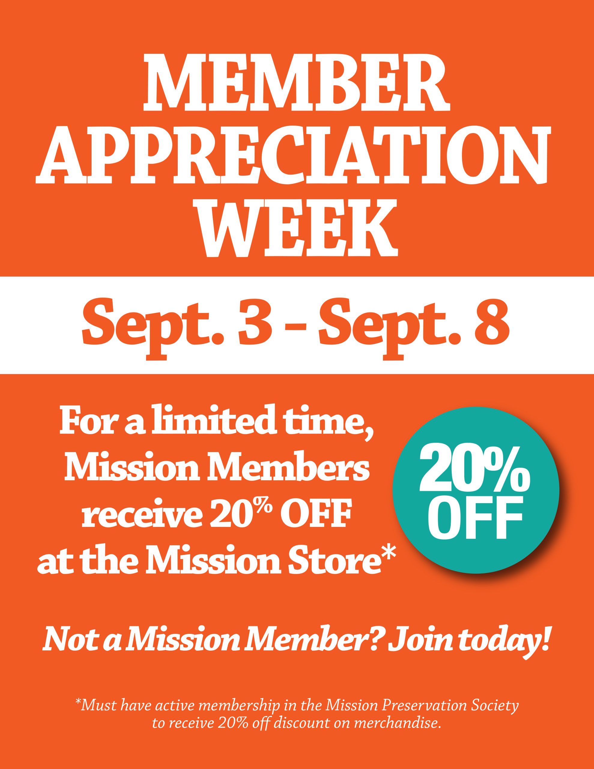 Shop at the Mission Store from September 3 through September 8 for Member Appreciation Week.