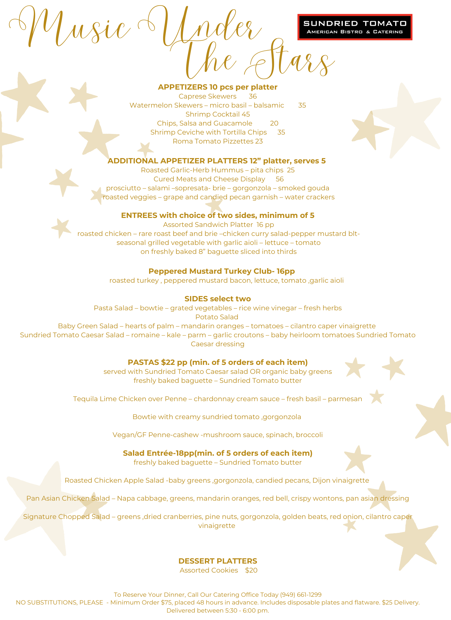 Sundried Tomato Bistro: Music Under the Stars Menu Click Here