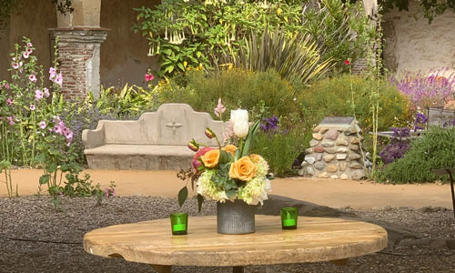 Keep in mind that usage of the site is generally outdoors and includes the primary spaces of the Front Courtyard and Garden, Sacred Garden and patio, Central Courtyard, Soldiers Barracks and patio, Serra Chapel, and museum rooms of the South Wing and West Wing buildings. The historic Serra Chapel can remain open for your guests upon request. Guests usually access the site from a private entry located on El Camino Real (East Gate/Serra Chapel) or the Gate House on Old Mission Road. Those details are managed as part of your concierge event services and planning.
