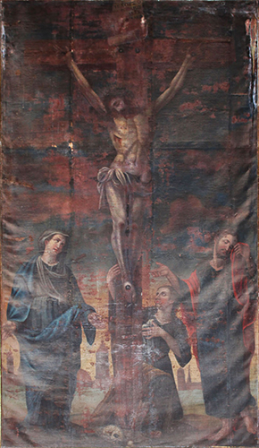 Due to poor storage practices earlier in the Mission’s history, many of the paintings are in need of conservation. Conservation, however, is an expensive process. As funds become available, often through private donations for specific works of art, Mission staff has the paintings cleaned and conserved, one by one. See conservation in action.