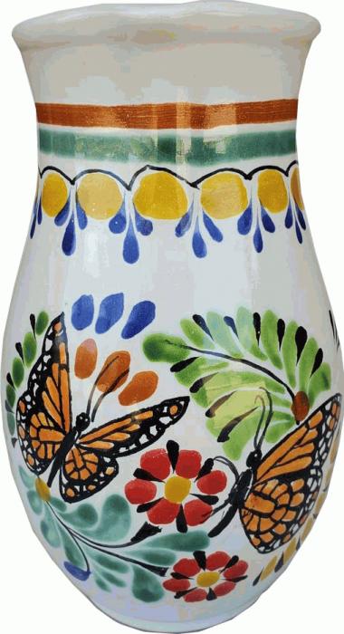 Hand made in Mexico by potter Gorky Gonzalez, this custom pitcher displays the Monarch butterfly who also migrates and lives on the Mission grounds.