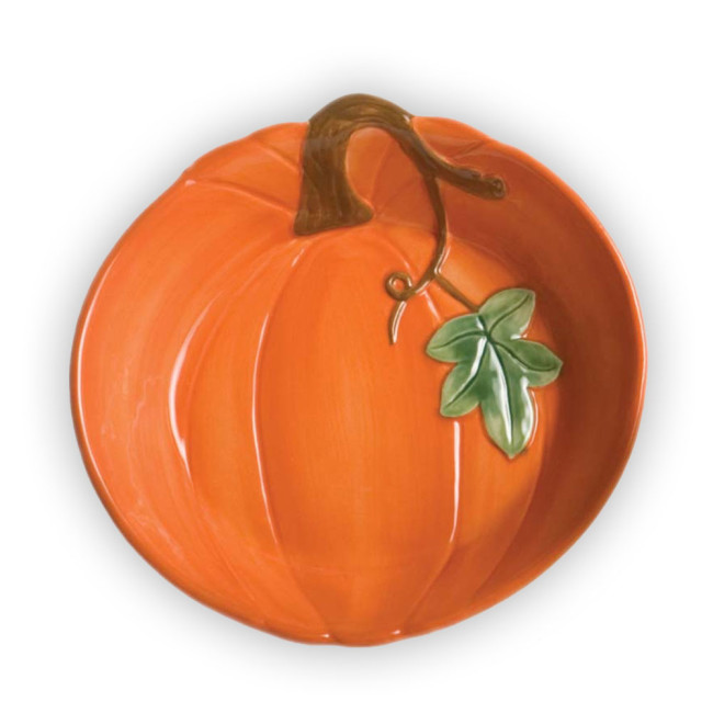 This pumpkin baking dish is perfect for baking and serving pies, cobblers, side dishes, and more. The beautifully decorated pumpkin-shaped ceramic pan features an elegant internal design.