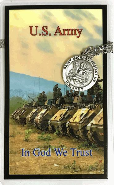 A set featuring prayer for soldiers card and a St. Michael Protect Us medal.